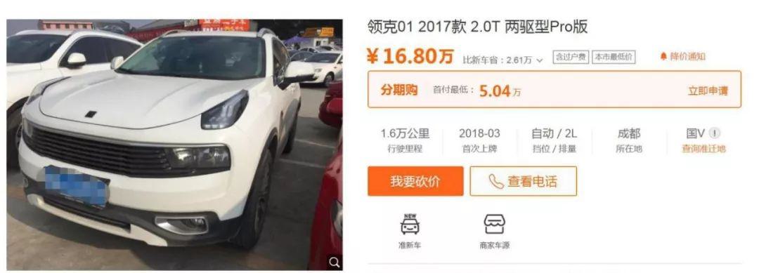 但是,在實際調(diào)查后,領(lǐng)克卻給人帶來了出乎意料的結(jié)果。就以某二手車平臺上的實車登記信息為例。這臺上市時指導(dǎo)價為17.88萬元的01型 Pro,目前依然能夠掛出16.8萬的售價。