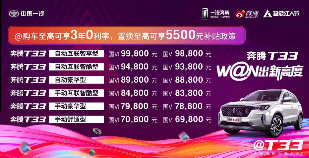 說(shuō)了這么多,總感覺(jué)還少點(diǎn)什么?沒(méi)錯(cuò),就是價(jià)格!除了內(nèi)外兼修的綜合素質(zhì),奔騰T33的價(jià)格也是非常有誠(chéng)意。全系最頂配都沒(méi)超過(guò)10萬(wàn)元,可以說(shuō)是真正成為了一輛年輕人敢想而且買(mǎi)得起的好車(chē)!