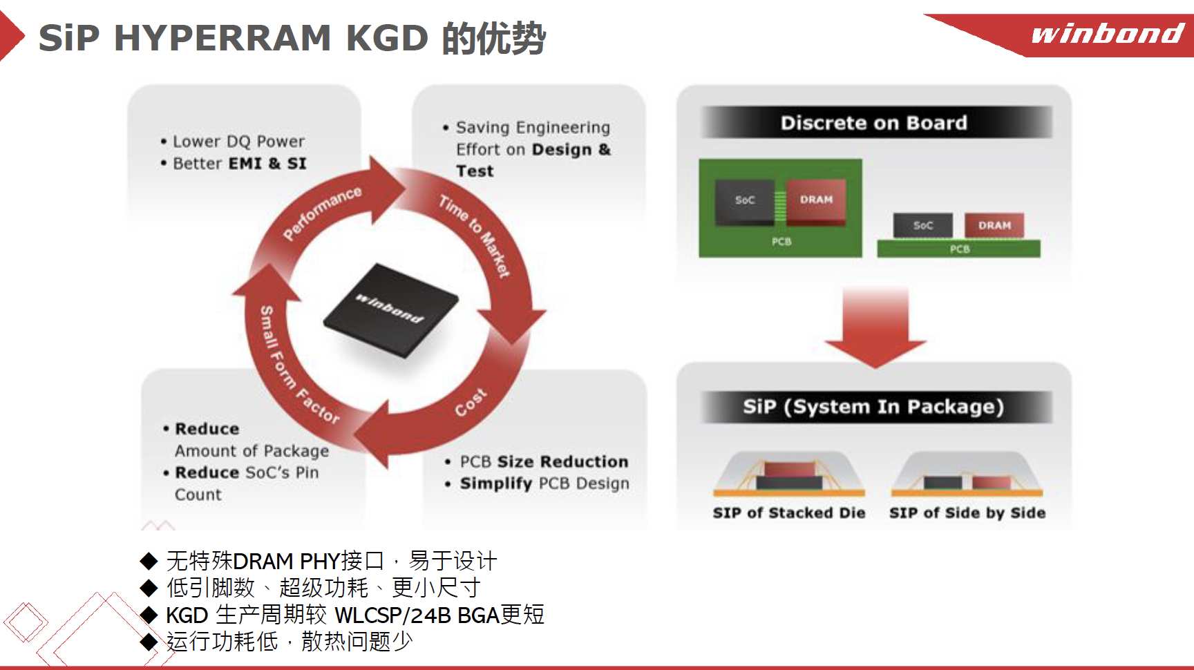 此外,華邦目前也在和主芯片廠商合作進(jìn)行SiP(多芯片合封技術(shù))的開發(fā),提供KGD產(chǎn)品跟客戶的主芯片一起封裝。SiP產(chǎn)品可以在華邦進(jìn)行測(cè)試,免去單獨(dú)的封測(cè)環(huán)節(jié)。多芯片合封技術(shù)同樣是減少封裝面積、減少能源消耗、降低客戶成本、提升產(chǎn)品性價(jià)比方式。