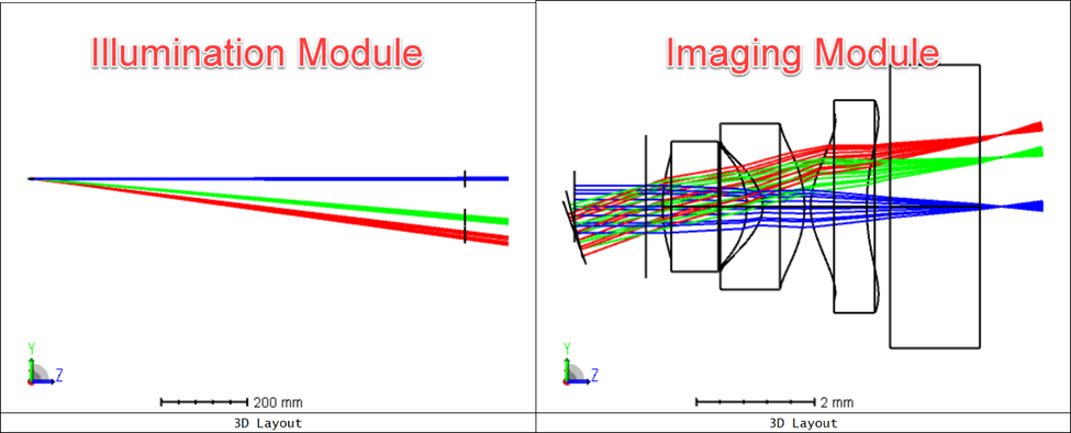 在此階段,我們可以進(jìn)行一些編輯,以更輕松地組合模塊。在最終裝配中,我們假設(shè)照明模塊的光源和成像模塊的傳感器在同一個(gè)平面上,因?yàn)槲覀兛梢韵胂笏鼈冊(cè)谡麄€(gè)系統(tǒng)中共享同一個(gè)電路板。我們?cè)诜切蛄心J街胁捎玫目傮w方法是: