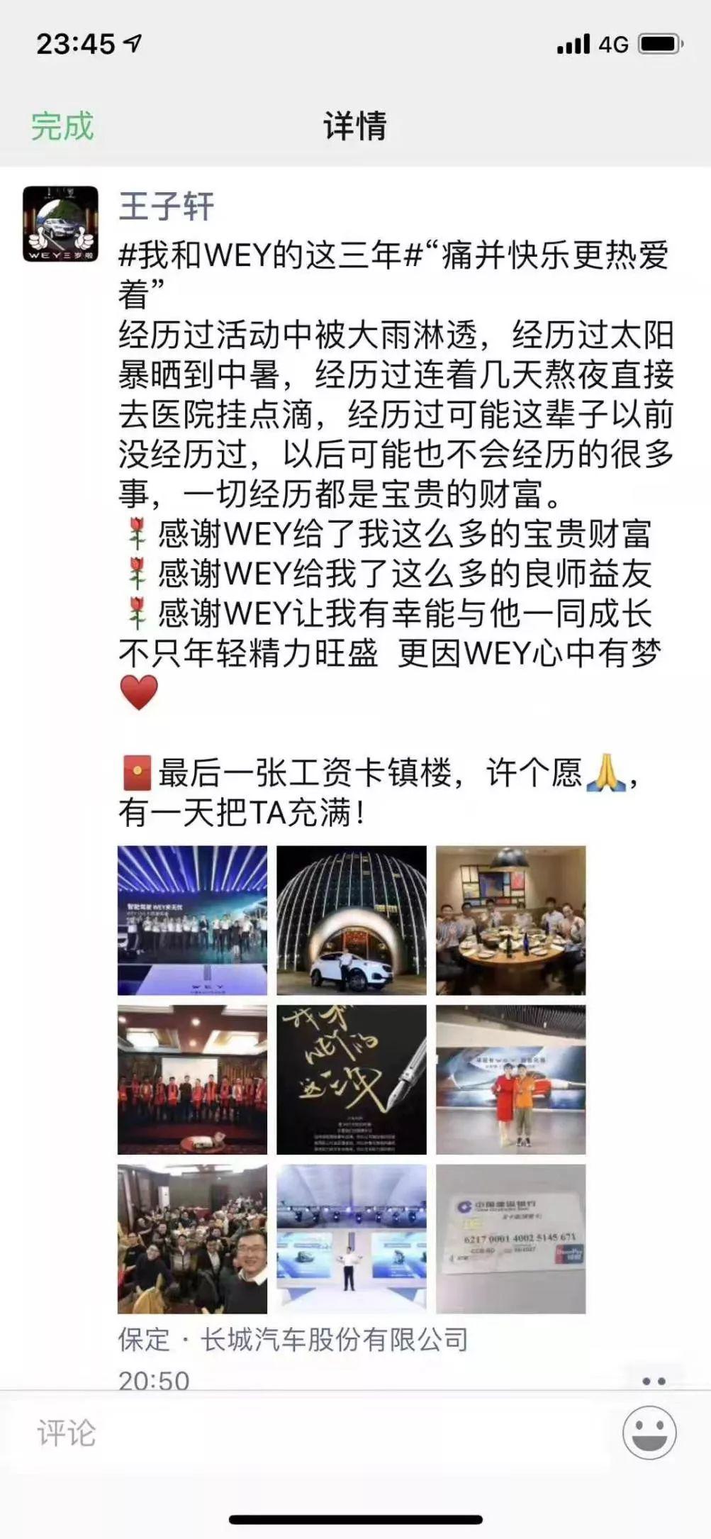 互動(dòng)話題反響熱烈,近段時(shí)間筆者打開(kāi)微信、微博等社交軟件,WEY與用戶及媒體之間溫暖故事都占據(jù)著十分顯眼的位置。在一片表白中,筆者也希望跳出常規(guī)視角,從極為隱秘的員工層面,去發(fā)現(xiàn)一個(gè)更加真實(shí)的WEY。