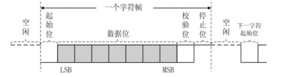 串口是“串行接口”的簡稱,即采用串行通信方式的接口。串行通信將數(shù)據(jù)字節(jié)分成一位一位的形式在一條數(shù)據(jù)線上逐個傳送,其特點是通信線路簡單,但傳輸速度較慢。因此串口廣泛應用于嵌入式、工業(yè)控制等領域中對數(shù)據(jù)傳輸速度要求不高的場合。串行通信分為兩種方式:同步串行通信和異步串行通信。同步串行通信需要通信雙方在同一時鐘的控制下,同步傳輸數(shù)據(jù);異步串行通信是指通信雙方使用各自的時鐘控制數(shù)據(jù)的發(fā)送和接收過程。UART是一種采用異步串行通信方式的通用異步收發(fā)傳輸器(universal asynchronous receiver-transmitter),它在發(fā)送數(shù)據(jù)時將并行數(shù)據(jù)轉(zhuǎn)換成串行數(shù)據(jù)來傳輸,在接收數(shù)據(jù)時將接收到的串行數(shù)據(jù)轉(zhuǎn)換成并行數(shù)據(jù)。UART串口通信需要兩根信號線來實現(xiàn),一根用于串口發(fā)送,另外一根負責串口接收。UART在發(fā)送或接收過程中的一幀數(shù)據(jù)由4部分組成,起始位、數(shù)據(jù)位、奇偶校驗位和停止位,如下圖所示。其中,起始位標志著一幀數(shù)據(jù)的開始,停止位標志著一幀數(shù)據(jù)的結(jié)束,數(shù)據(jù)位是一幀數(shù)據(jù)中的有效數(shù)據(jù)。校驗位分為奇校驗和偶校驗,用于檢驗數(shù)據(jù)在傳輸過程中是否出錯。奇校驗時,發(fā)送方應使數(shù)據(jù)位中1的個數(shù)與校驗位中1的個數(shù)之和為奇數(shù);接收方在接收數(shù)據(jù)時,對1的個數(shù)進行檢查,若不為奇數(shù),則說明數(shù)據(jù)在傳輸過程中出了差錯。同樣,偶校驗則檢查1的個數(shù)是否為偶數(shù)。