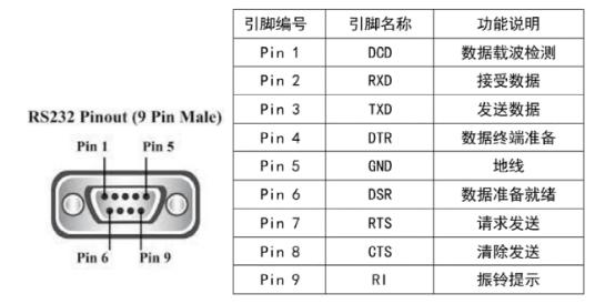 DB9 接口定義以及各引腳功能說明如圖,我們一般只用到其中的 2(RXD)、3(TXD)、5(GND)引腳,其他引腳在普通串口模式下一般不使用。