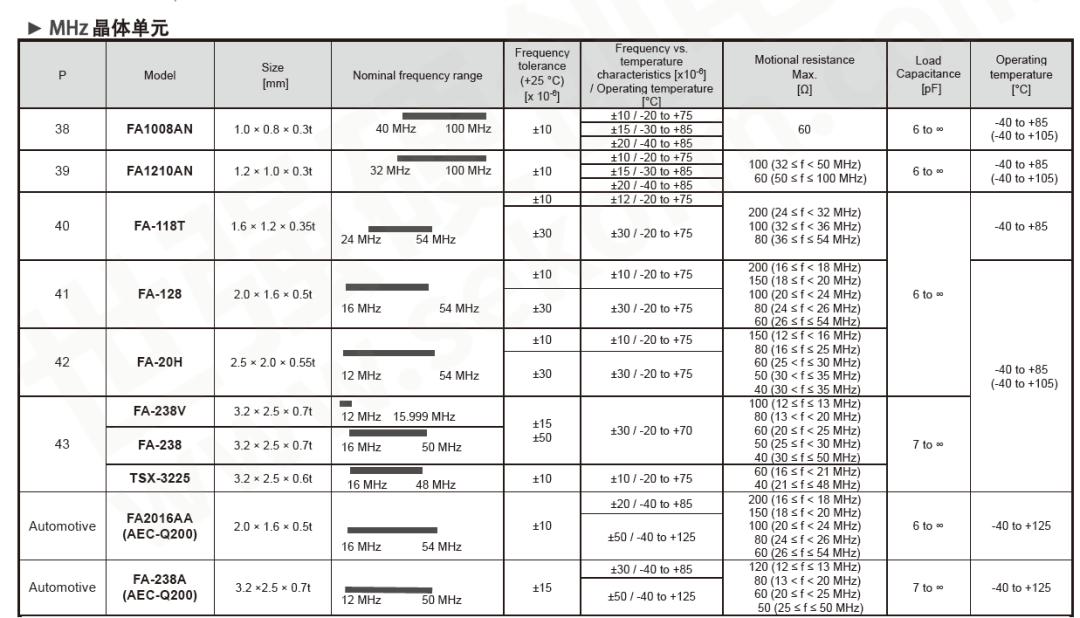 忽略車規(guī)級和商用,從頻率和封裝來看,F(xiàn)A-128/FA-20H/FA-238V等都可以選擇。