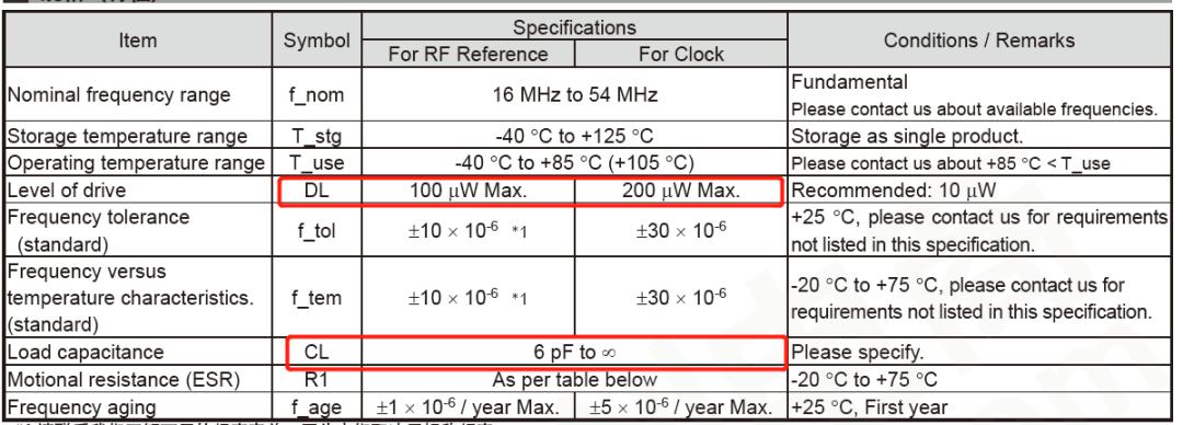 第二步看具體的參數(shù),以FA-128為例,驅(qū)動(dòng)功率=10uW, CL>6pF,如果選擇16MHz 可看具體的參數(shù)。