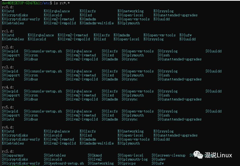 根據(jù)前面設(shè)定的運(yùn)行等級(jí),系統(tǒng)會(huì)執(zhí)行/etc/rc0.d/到/etc/rc6.d/中相應(yīng)的腳本程序,來(lái)完成相應(yīng)的初始化工作和啟動(dòng)相應(yīng)的服務(wù),都是一些服務(wù)程序。其中以S開(kāi)頭表示系統(tǒng)即將啟動(dòng)的程序,如果以K開(kāi)頭,則代表停止該服務(wù)。S和K后緊跟的數(shù)字為啟動(dòng)順序編號(hào)。