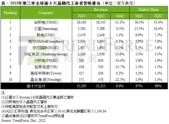 第三季前十大晶圓代工產(chǎn)值環(huán)比增長6%,第四季營收將正式進入修正期