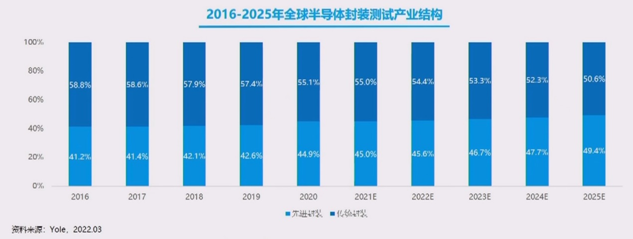 全球半導體封裝測試產(chǎn)業(yè)結(jié)構(gòu)(2016-2025年) 資料來源:Yole