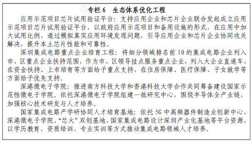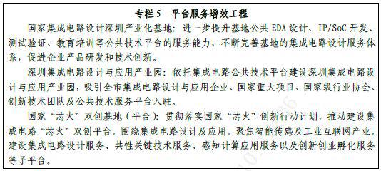 本文開篇已經(jīng)提到深圳,這里就不多談深圳KPI的問題,在本月深圳市人民政府關(guān)于印發(fā)進一步推動集成電路產(chǎn)業(yè)發(fā)展行動計劃(2019-2023年)的通知中,將集成電路的主要任務(wù)分成了6大欄目,一目了然,筆者截圖如下: