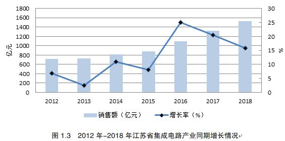 文中提到,2018年度,江蘇省集成電路產(chǎn)業(yè)業(yè)績表現(xiàn)仍呈兩位數(shù)增長,銷售總收入為1926.16億元。