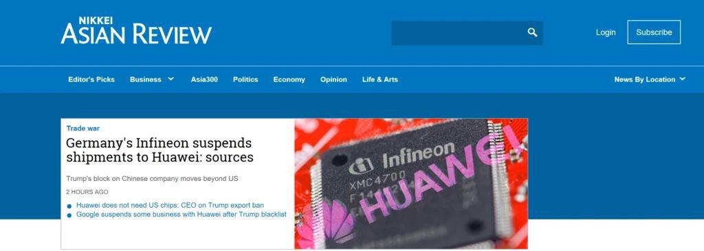 《日經(jīng)亞洲評(píng)論》(Nikkei Asian Review)援引兩名匿名消息人士的話報(bào)道稱,德國(guó)芯片生產(chǎn)商英飛凌(Infineon Technologies)已暫停向中國(guó)電信巨頭華為技術(shù)有限公司(Huawei Technologies Co.)供貨,這是美國(guó)不斷加大對(duì)華為施壓力度的一個(gè)結(jié)果。