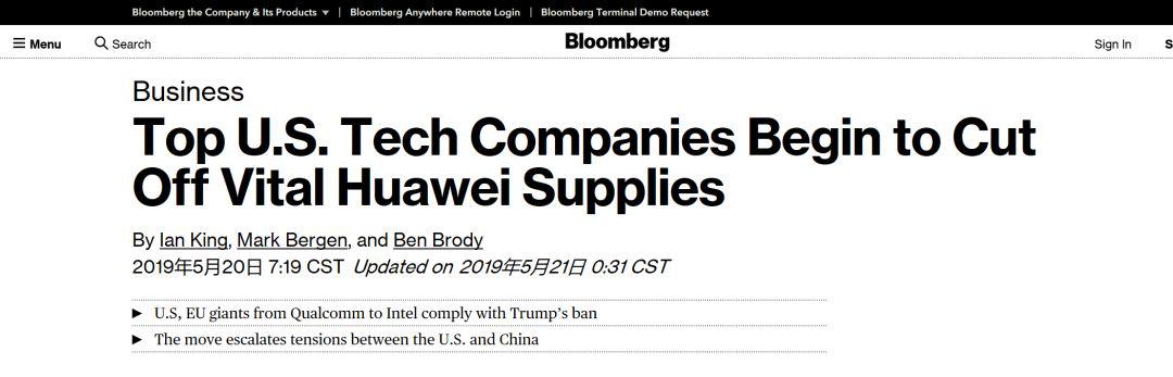據(jù)彭博通訊社消息,四家公司已決定不向華為供貨,但這些公司均拒絕評(píng)論。