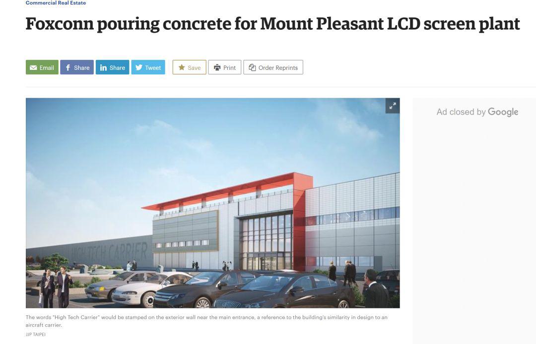 6月20日,據(jù)美媒Milwaukee Business Journal報道,富士康在威斯康辛州的工廠建設(shè)方案已經(jīng)獲得了當(dāng)?shù)貦C(jī)構(gòu)的批準(zhǔn),富士康開始了建筑物基礎(chǔ)等施工。報道稱該建筑將于2020年底完工,占地近100萬平方英尺,將會是被美第一個此類液晶顯示屏制造廠。