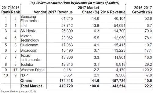 若能保持這樣的增長(zhǎng)斜率,2018年就可以超越意法半導(dǎo)體,躋身前五。