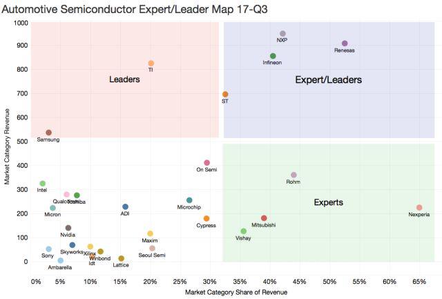 車載半導(dǎo)體市場(chǎng)就是一個(gè)明顯例證,第一大廠商恩智浦只有不到15%的市占率,最高峰也不過16%。在這種層層管控,分散制衡的供應(yīng)鏈里,三星傳統(tǒng)猛攻一點(diǎn)撬開缺口后迅速擴(kuò)大規(guī)模的戰(zhàn)法恐難奏效。