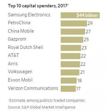 三星電子既是全球第一大半導體買家,也是第一大半導體賣家,而且這種趨勢還有延續(xù)下去的可能。三星電子2017年資本支出更是在全球所有公司中雄踞榜首,達到了驚人的440億美元,其中約有260億投入到半導體當中,分別是英特爾和臺積電2017年資本支出的兩倍以上。