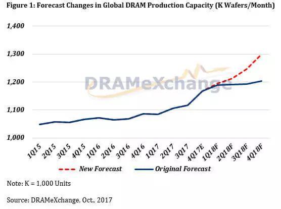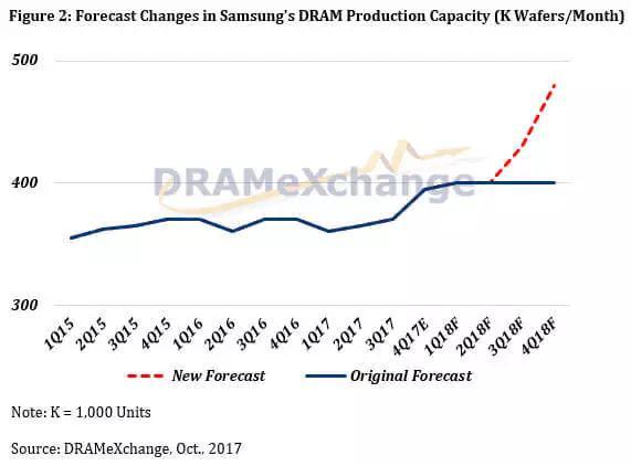 根據(jù)集邦科技的數(shù)據(jù),2017年第三季全球 DRAM 產(chǎn)能為每月 110 萬片,如果三星真的增產(chǎn) 23.5 萬片,全球 DRAM 供給將增加20%。