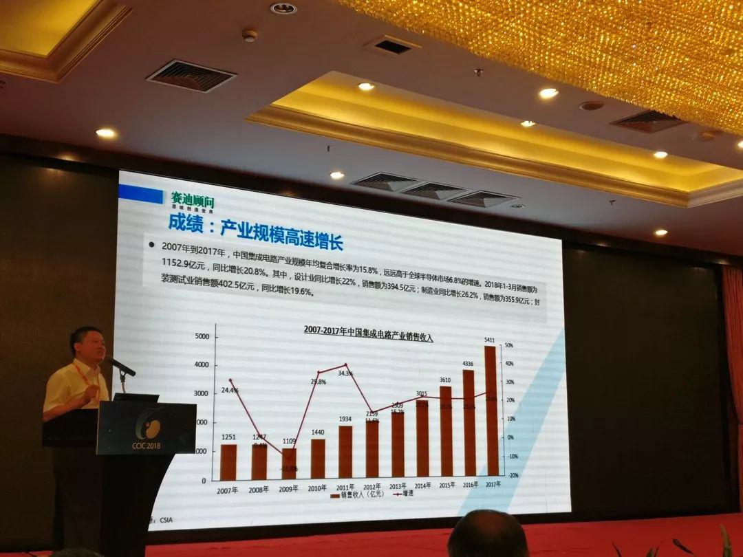 單論中國,2007年到2017年,中國集成電路產業(yè)年均復合增長率為15.8%,遠遠高于全球半導體市場的6.8%的增速。2018年1-3月銷售額為1152.9億元,同比增長20.8%。其中,設計業(yè)同比增長22%,銷售額為394.5億元;制造業(yè)同比增長26.2%,銷售額為355.9億美元;封裝測試業(yè)銷售額為402.5億元,同比增長19.6%。