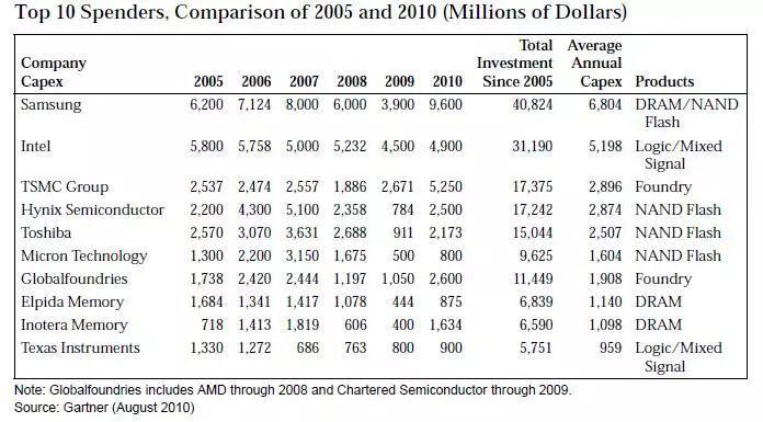 2005至2010年AMD/格羅方德資本支出狀況