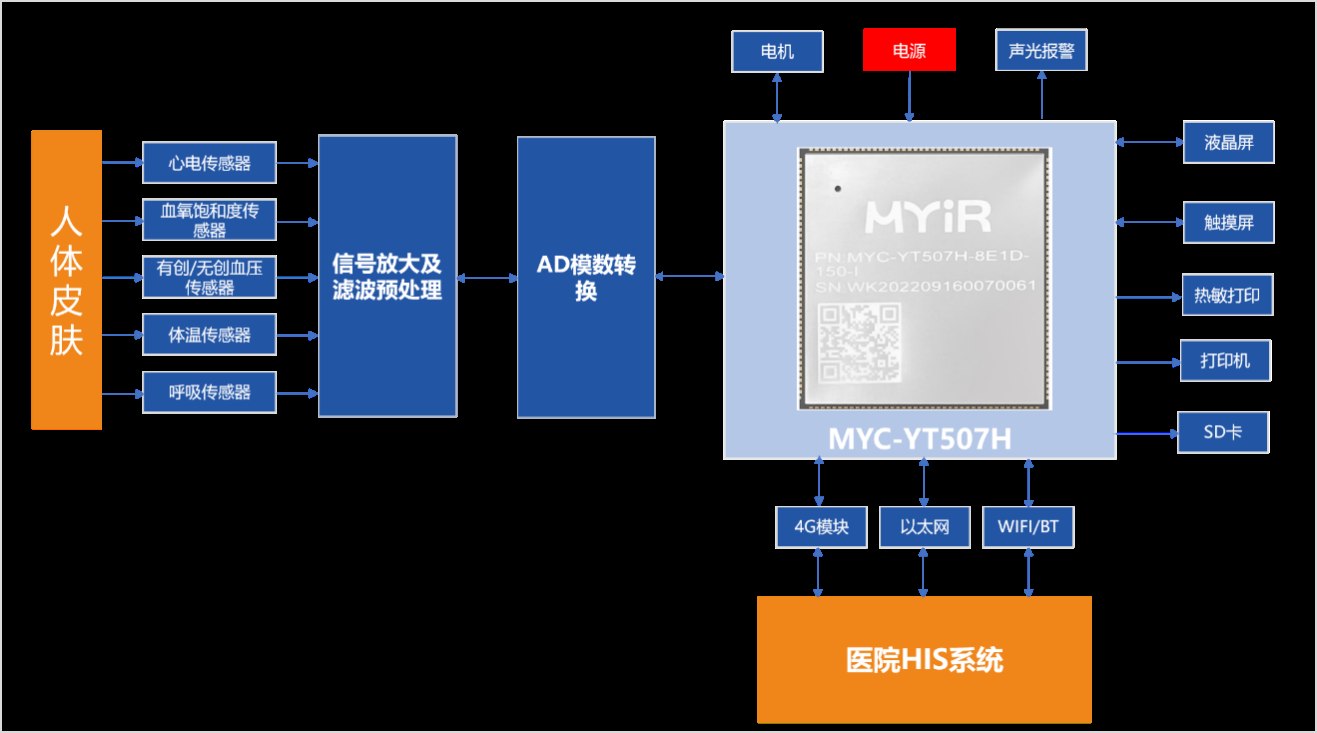 基于米爾MYC-YT507H的核心板醫(yī)療監(jiān)護儀方案圖
