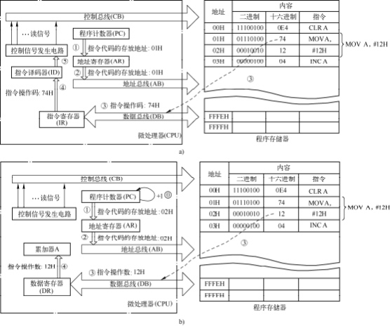 a) 讀取操作碼 b) 讀取操作數(shù)
