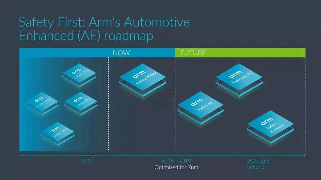 Cortex-A76AE針對(duì)7納米工藝進(jìn)行優(yōu)化,可以小于30瓦的功耗實(shí)現(xiàn)超過(guò)250KDMIPS的性能。Cortex-A76AE是Arm“汽車(chē)增強(qiáng)型”處理器路線圖中的第一款產(chǎn)品,Arm后續(xù)還將推出一系列產(chǎn)品,全新路線圖包括“Helios-AE”和“Hercules-AE”系列,都將針對(duì)7納米制程進(jìn)行優(yōu)化。