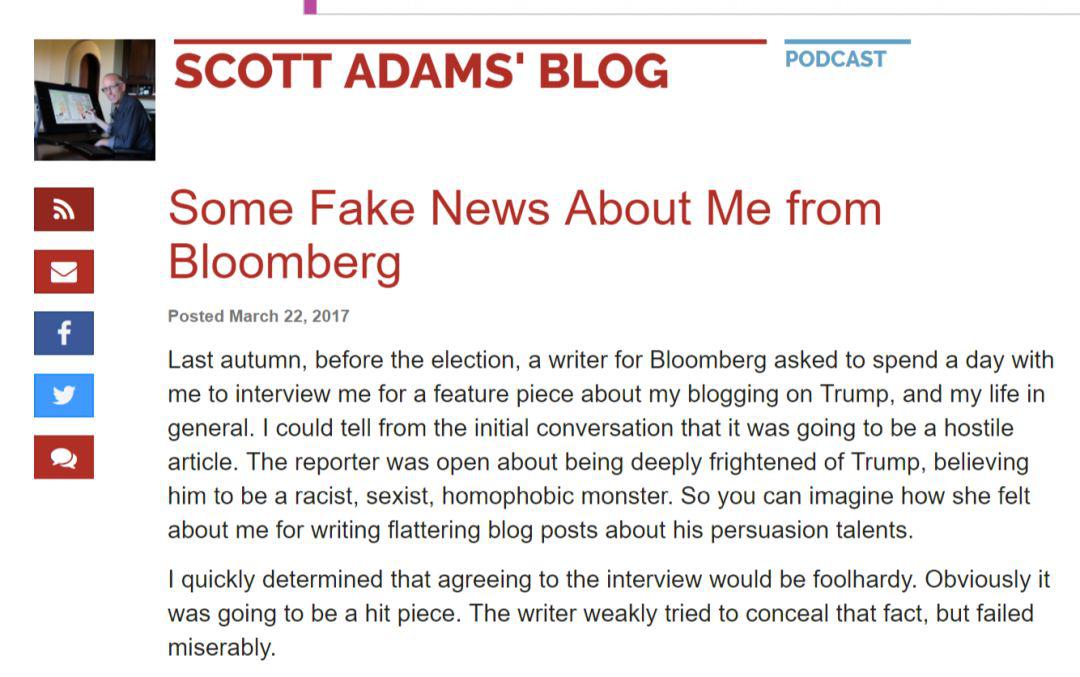 在dilbert.com的博客里,筆者發(fā)現(xiàn)一篇來(lái)自Scott Adams的博客,其揭露彭博社對(duì)其采訪報(bào)道存在虛假成分。