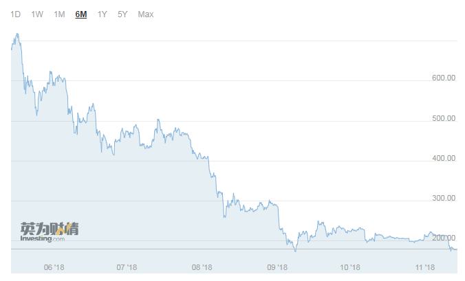 隨后有兩個問題砸到了用于挖礦的GPU身上。首先是加密市場迅速暴跌,下圖是以太坊價格走勢圖。目前交易價格178美元左右,遠(yuǎn)遠(yuǎn)低于1月份的1400美元。挖礦的高價值開始不復(fù)存在,因此購買相關(guān)硬件(GPU等)的熱情也不復(fù)存在,廠商盈利能力也隨之下降。