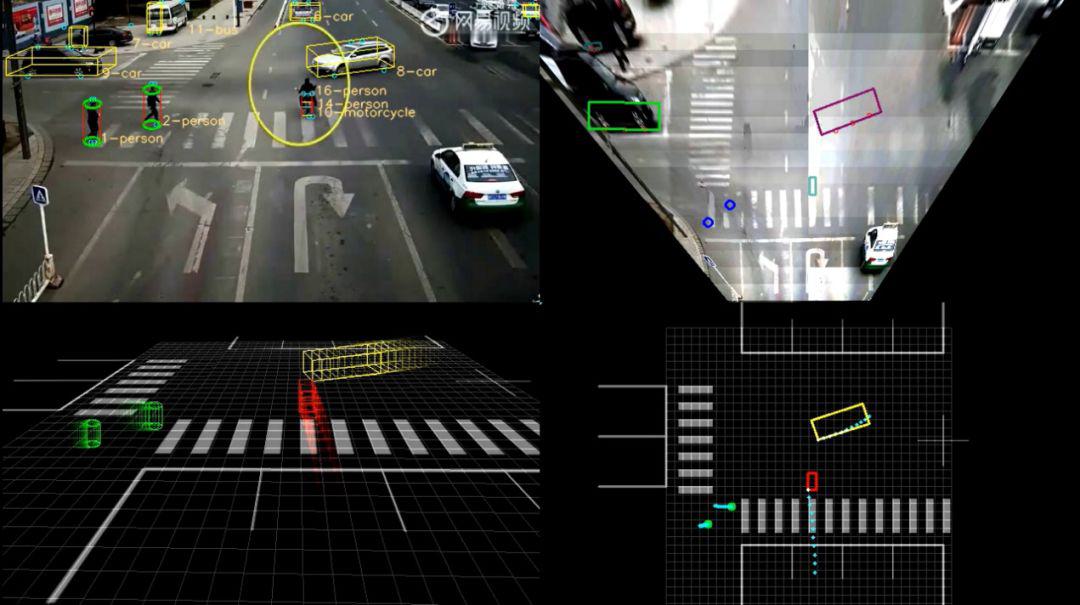 另一個Demo是智能交通路口,其中利用了英特爾處理器的計算能力, 通過分析路口交通監(jiān)控視頻, 定位并追蹤所有車輛和行人, 生成交通路口的實時全景地圖。過往車輛通過全景地圖可以得到自身傳感器盲區(qū)的信息, 從而提高車輛通過路口的安全性和通行效率。