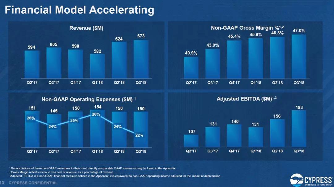 上任兩年時間,Hassane El-Khoury交出了非常漂亮的成績單。賽普拉斯總營收兩年增長33%,汽車和工業(yè)營收增長50%,無線業(yè)務增長129%。特別讓人關(guān)注的是,毛利率從2016年的39%提升到47%,在硅谷半導體上市公司中,“還沒有一家能在這段時間能把毛利率提升8%”。