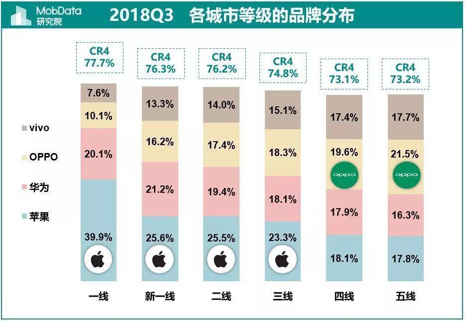 從MobData給出的的城市分布、品牌忠誠度等數(shù)字來看,蘋果的用戶分布,似不應(yīng)如其用戶畫像所描繪的集中于低收入人群。蘋果用戶換機(jī)忠誠度居首位,65.7%的蘋果用戶換機(jī)還會(huì)選擇蘋果,而OPPO、小米、vivo、華為換機(jī)忠誠度均在30%左右,如果說第一購買蘋果的用戶中學(xué)生居多,蘋果老用戶中,學(xué)生比例應(yīng)不高。從品牌城市分布來看,一線和新一線城市蘋果優(yōu)勢(shì)明顯,即便學(xué)生用戶數(shù)量多,但在一線、新一線和二線城市,除去學(xué)生用戶后,到哪里去找那么多收入不到3000但非要買蘋果手機(jī)的用戶呢?