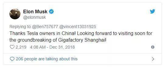 對(duì)于特斯拉而言,中國(guó)已經(jīng)是它僅次于美國(guó)的第二大市場(chǎng),馬斯克在2018年最后一天的推特除了焦慮之外,背后藏著對(duì)2019年重大計(jì)劃的展望。