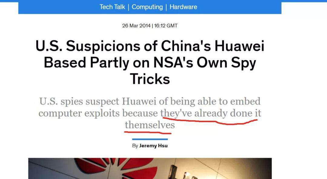 鏈接為:https://spectrum.ieee.org/tech-talk/computing/hardware/us-suspicions-of-chinas-huawei-based-partly-on-nsas-own-spy-tricks