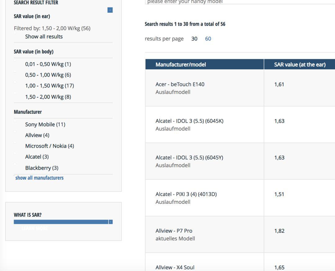 2018年德國在售手機(jī)輻射排行榜(最高->最低)