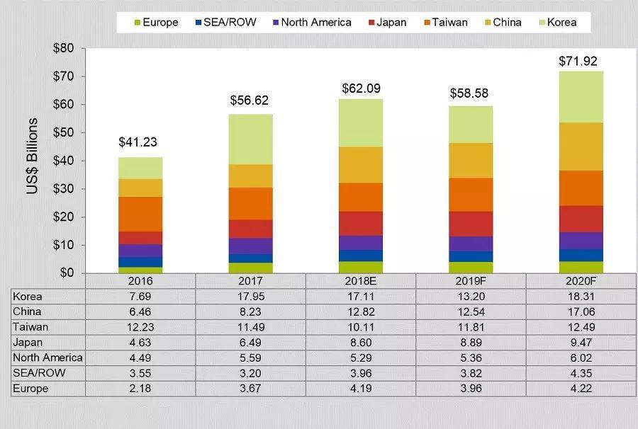 據(jù)去年年底國際半導(dǎo)體產(chǎn)業(yè)協(xié)會(huì)(SEMI)發(fā)表預(yù)測報(bào)告來看,2018年全球半導(dǎo)體制造新設(shè)備銷售金額預(yù)計(jì)成長9.2%,為621億美元,高于去年所創(chuàng)下的566億美元?dú)v史新高。2019年設(shè)備市場預(yù)期將微幅下滑4%,但2020年將成長20.7%,達(dá)到719億美元的歷史新高。經(jīng)過2019年周期低估后,半導(dǎo)體設(shè)備市場將會(huì)迎來更顯著的發(fā)展,而業(yè)內(nèi)的廠商想要掠奪更多市場,收購顯然是最顯著且高效的方案。