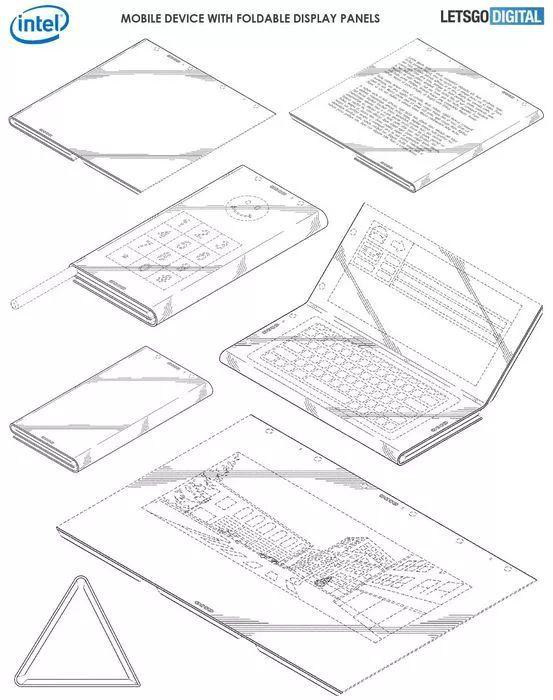 今年1月份,荷蘭 LetsGoDigital 網(wǎng)站曝光了英特爾提交的一項折疊屏設(shè)備專利,描述了一款采用 Windows 操作系統(tǒng)的折疊屏智能機。其配備了手寫筆和三個顯示部件,可變身為平板模式,提供較大的顯示面積。