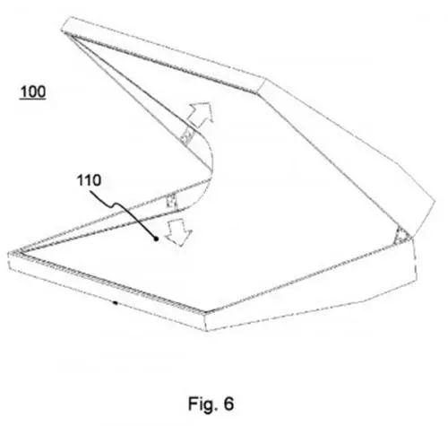 據(jù)專利申請材料指出,該設(shè)備將采用柔性O(shè)LED顯示屏,“柔性顯示屏固定在機身上,蓋過鉸鏈。當兩部分發(fā)生相對旋轉(zhuǎn)時,顯示屏可以彎曲。鉸鏈可以使兩部分顯示屏呈現(xiàn)面對面或背對背的形態(tài)。