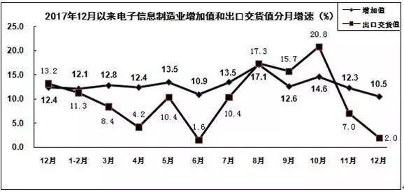 下面四張折線圖,反應(yīng)了中國電子信息制造業(yè)自2017年12月以來的一些相關(guān)數(shù)據(jù)。