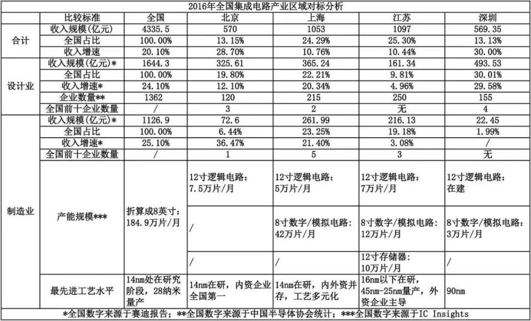 7,2016區(qū)域集成電路產(chǎn)業(yè)對(duì)標(biāo)分拆(數(shù)據(jù)引自朱晶文章)