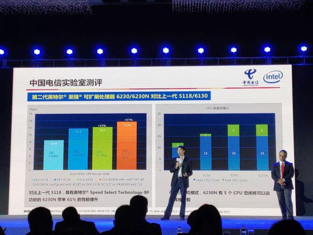 當Rajeeb Hazra宣布英特爾第二代至強可擴展處理器采用英特爾Speed select技術,已針對特定網(wǎng)絡需求而優(yōu)化,網(wǎng)絡工作負載性能提高1.76倍時。