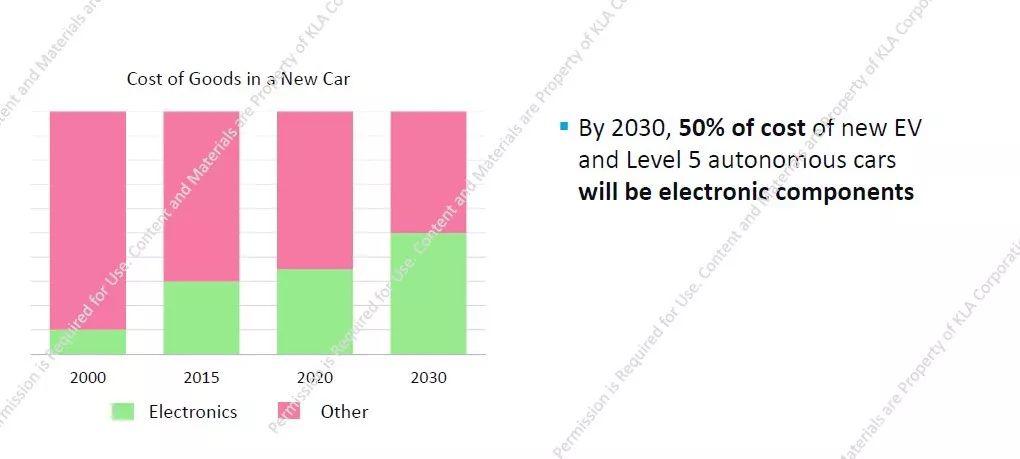 2,隨著汽車工業(yè)的進(jìn)步,汽車本身將會使用更多電子產(chǎn)品,到2030年,新電動汽車和無人駕駛汽車的 50%的成本將來自電子元件。