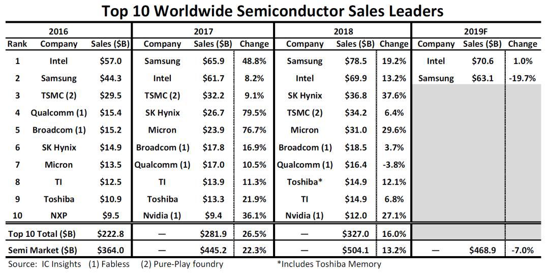 2019年悲觀開局?從十大半導(dǎo)體廠商財(cái)報(bào)中看“貓膩”
