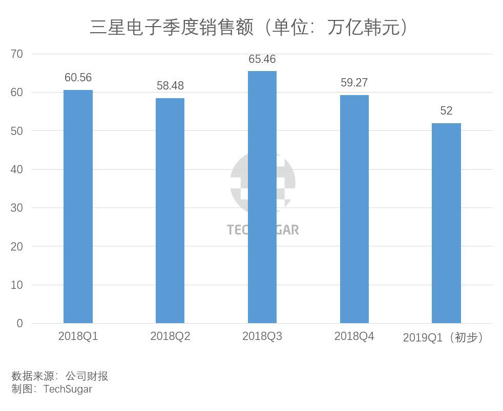 財(cái)報(bào)顯示,三星電子2019年第一季度的銷售額為52萬億韓元(約合3073億人民幣),同比下降14.13%、環(huán)比下降9.9%。其營業(yè)利潤為6.2萬億韓元(約合366億人民幣),同比下降60.36%、環(huán)比下降38.5%。