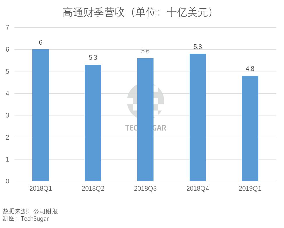 今年1月31日時(shí),高通發(fā)布2019財(cái)年第一財(cái)季(去年第四季度)財(cái)報(bào),財(cái)報(bào)顯示,高通去年Q4營收為48億美元,同比下滑20%,凈利潤為11億美元,同比扭虧(上年同期為凈虧損60億美元)。芯片總出貨量同比下降22%至1.86億顆。