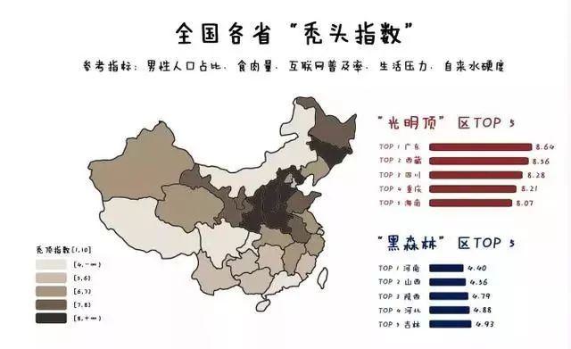 排名第一的廣東也是全國禿頭指數(shù)最高的城市。顯然這告訴我們一個(gè)道理,頭發(fā)和專利不可兼得。