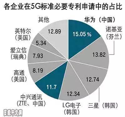 當(dāng)然,在專利方面,本周還有一個(gè)圖讓筆者印象深刻。日經(jīng)網(wǎng)發(fā)文,根據(jù)德國專利數(shù)據(jù)庫公司IPlytics的數(shù)據(jù),截至3月,5G通信所需的標(biāo)準(zhǔn)必要專利申請數(shù)量中,中國占有34.02%的比例。其中,5G標(biāo)準(zhǔn)必要專利中申請數(shù)量最多的企業(yè)是華為,占到15.05%。中國企業(yè)中,中興通訊排名第五,中國電信科學(xué)技術(shù)研究院(CATT)排名第九。