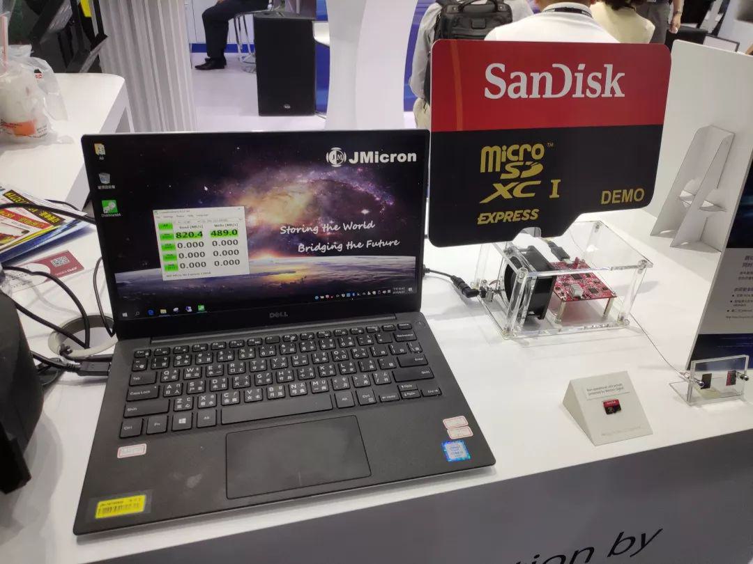 在SD協(xié)會的展區(qū),一群媒體老師在聽著現(xiàn)場講解,據(jù)介紹,次世代的SD Express存儲卡可被視為拆卸式的固態(tài)硬盤,采用PCIe接口技術(shù)及搭載先進的NVMe協(xié)定,其效能達到985MB/s。