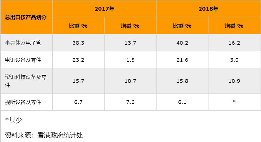 從數(shù)據(jù)中可以看出一些端倪,據(jù)HKTDC Research今年7月份給出的最新數(shù)據(jù)顯示,電子業(yè)是香港最大的產(chǎn)品出口創(chuàng)匯行業(yè),占香港2018年總出口68.3%。業(yè)內(nèi)出口以轉(zhuǎn)口為主,多屬高科技產(chǎn)品,尤以電訊設(shè)備、半導(dǎo)體及電腦相關(guān)產(chǎn)品為然。