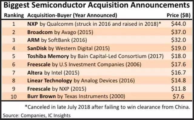 此外,現(xiàn)實(shí)的重重枷鎖(如各國保護(hù)國內(nèi)技術(shù)、全球貿(mào)易摩擦等)告訴你這種聯(lián)姻將越發(fā)困難。去年8月中旬,IC Insights就發(fā)文稱:“基于芯片企業(yè)合并協(xié)議帶來的高金額成交,將大型企業(yè)合并在一起引致的復(fù)雜性,以及各國為保護(hù)其國內(nèi)供應(yīng)商而進(jìn)行更嚴(yán)格的審查等種種考慮,未來大規(guī)模的半導(dǎo)體并購不太可能發(fā)生?!?