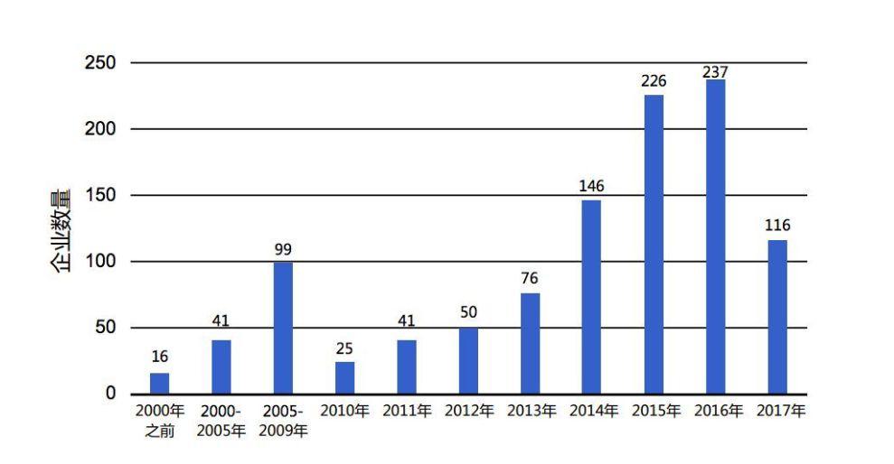 北京人工智能企業(yè)成立時間分布(來源:中關(guān)村天使投資聯(lián)盟)